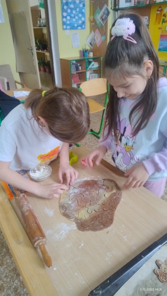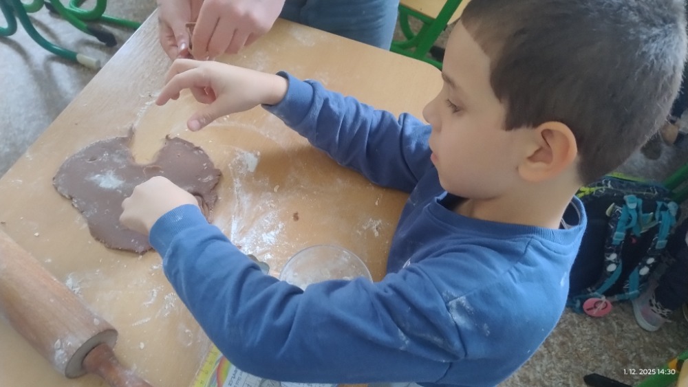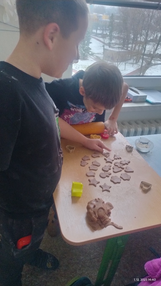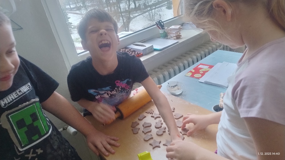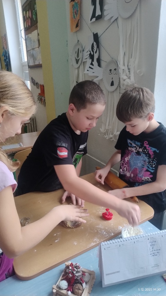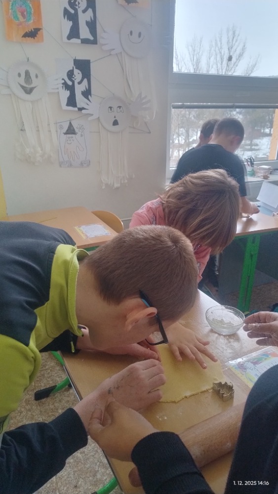 Přílohy Vánoce jsou tady a k nim neodmyslitelně patří i cukroví. Děti se zapojily do jeho přípravy a s chutí pracovaly. Nechyběla radost ani vánoční atmosféra.