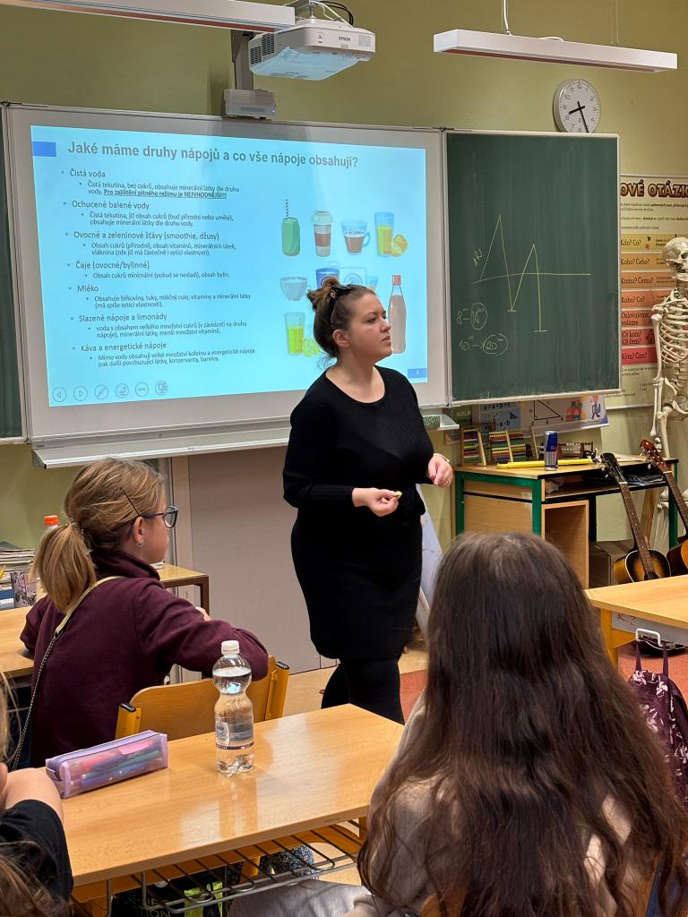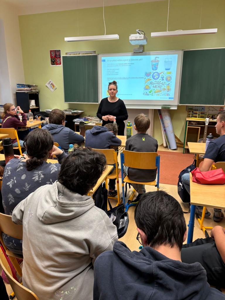 Ve středu 15. 10. proběhla ve škole beseda s názvem „Pitný režim“, kterou pro žáky 2. stupně uspořádala Krajská hygienická stanice. Žáci se dozvěděli, proč je důležité pravidelně pít, kolik tekutin denně potřebujeme a jaké nápoje jsou pro naše zdraví nejlepší. Také si procvičili správný způsob mytí rukou, což je důležitý krok k ochraně před nemocemi.