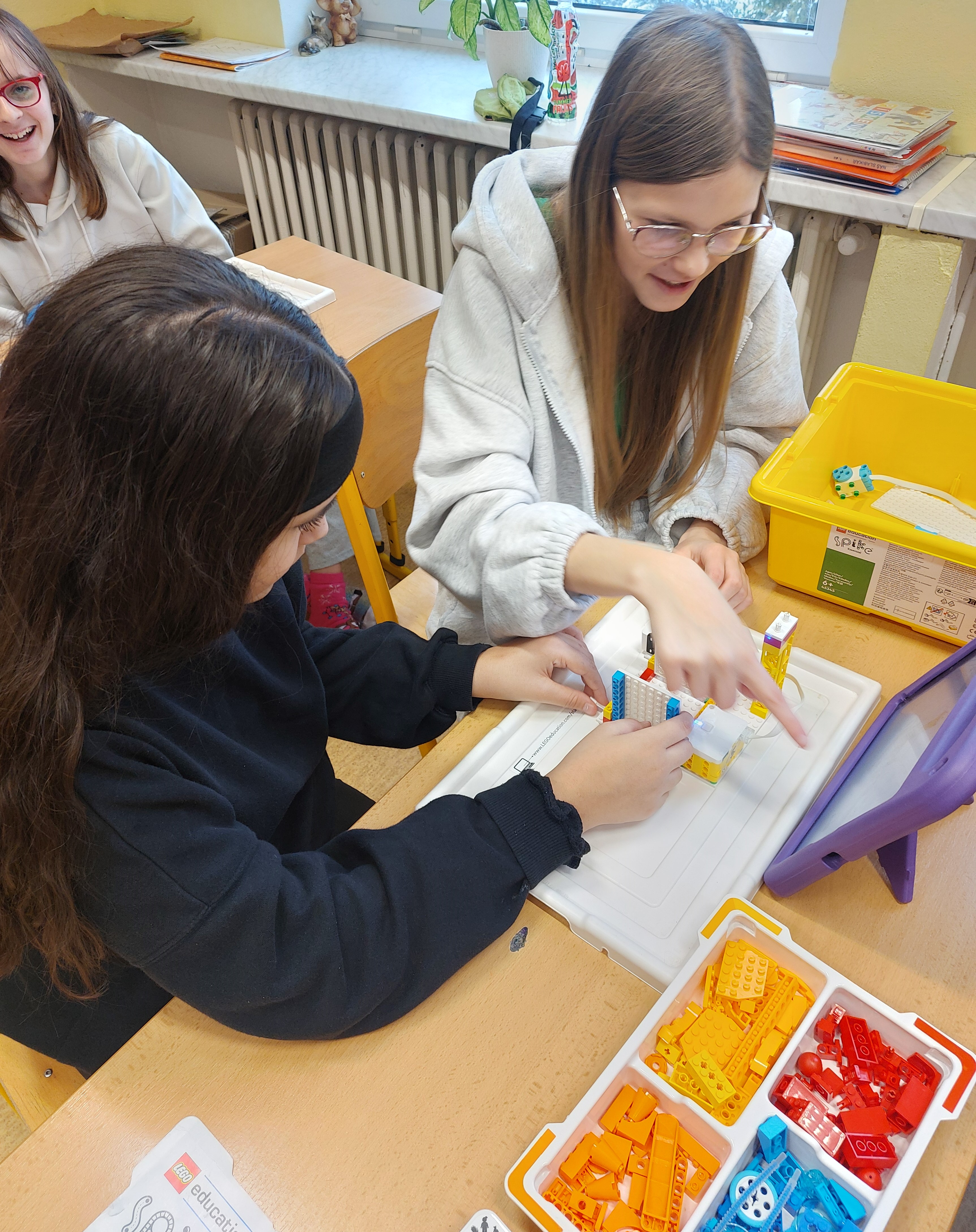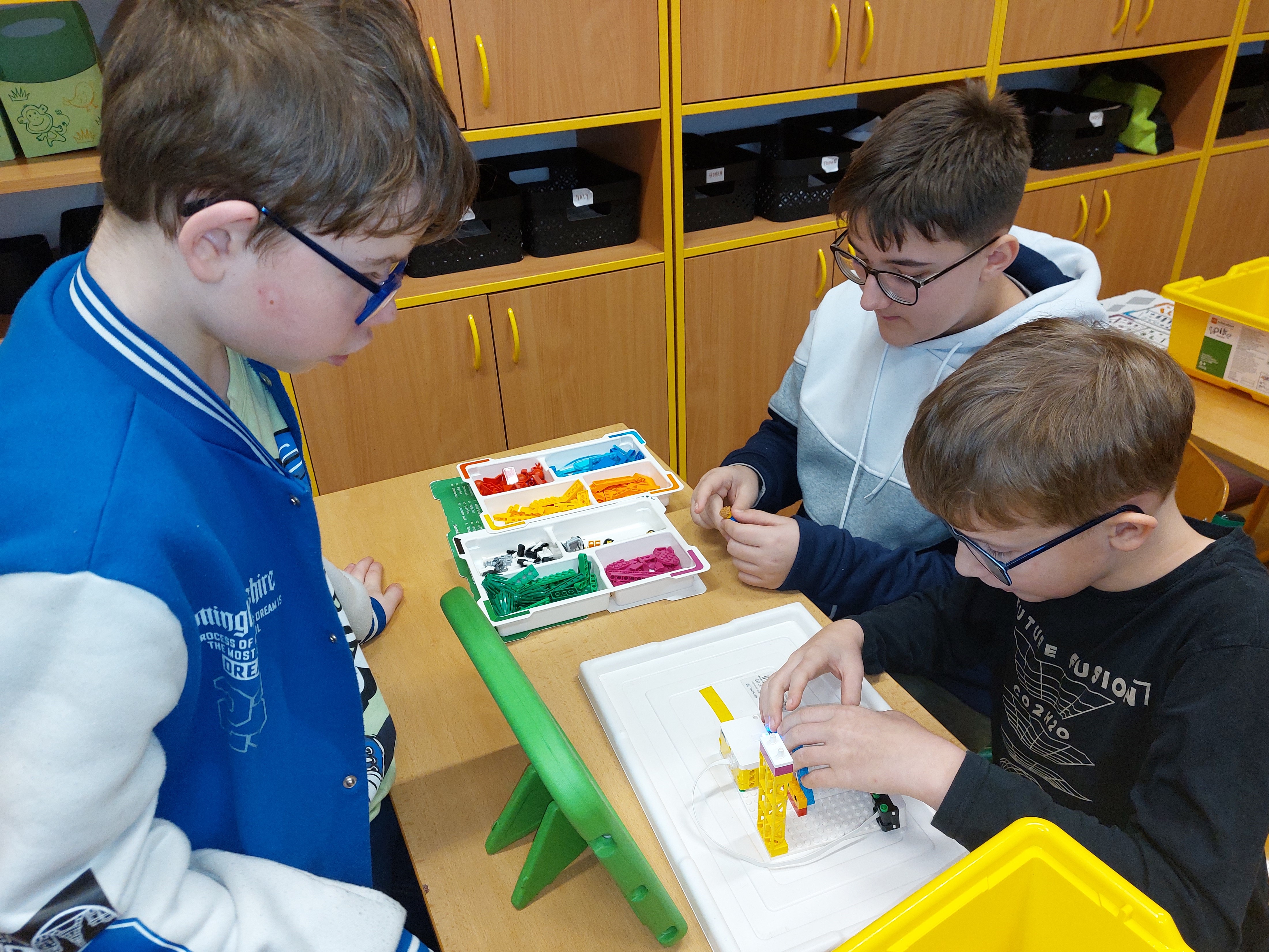 Žáci pracovali ve dvojicích, čímž se přirozeně rozvíjela jejich schopnost spolupracovat, komunikovat a hledat společná řešení. Mohli postavit auta, autobusy, kolotoče, houpačky nebo lanovky a propojit je s tabletem. Po naprogramování se modely pohybovaly a mohly vydávat i světelné a zvukové efekty! Zároveň se učili řešit problémy metodou pokus–omyl, rozvíjeli kreativní myšlení a hledali vlastní cesty k funkčnímu řešení. Program tak podporoval nejen technické dovednosti dětí, ale také kritické myšlení a samostatnost.