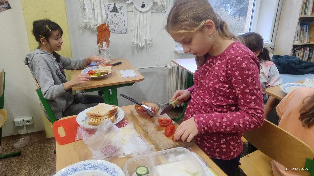 Malí Kuchtíci se pustili do přípravy toastů. Nejen že si pochutnali, ale zvládli si po sobě i pěkně uklidit. Vaření i pořádek šly ruku v ruce.